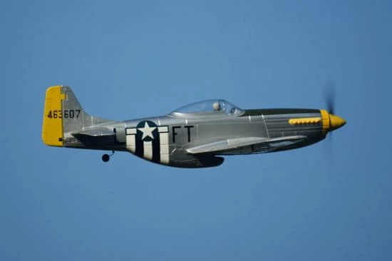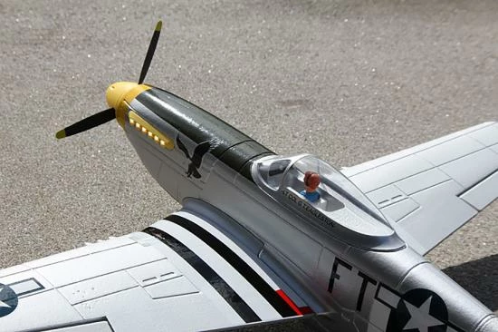 The V2 version of the Dynam P-51 Mustang 1.2-meter aircraft made a lot more optimization on the previous version. Re-design painting program,blades changed to four-blade propeller, more adequate flight dynamics, higher degree of simulation. As the aircraft accessories upgrade, the aircraft simultaneously with the latest Skylord series ESC, compared to the original model, the algorithm has been optimized, the throttle has better linearity, improves the user experience. And the landing gear, the electronic and structure are optimized,the reliability has been significantly improved.